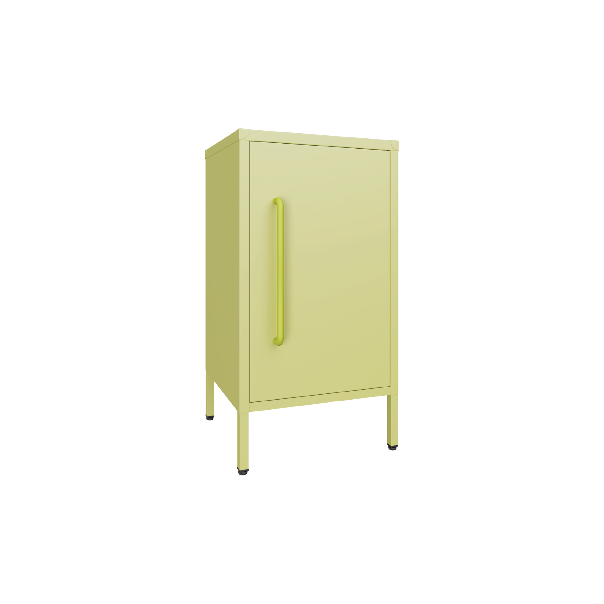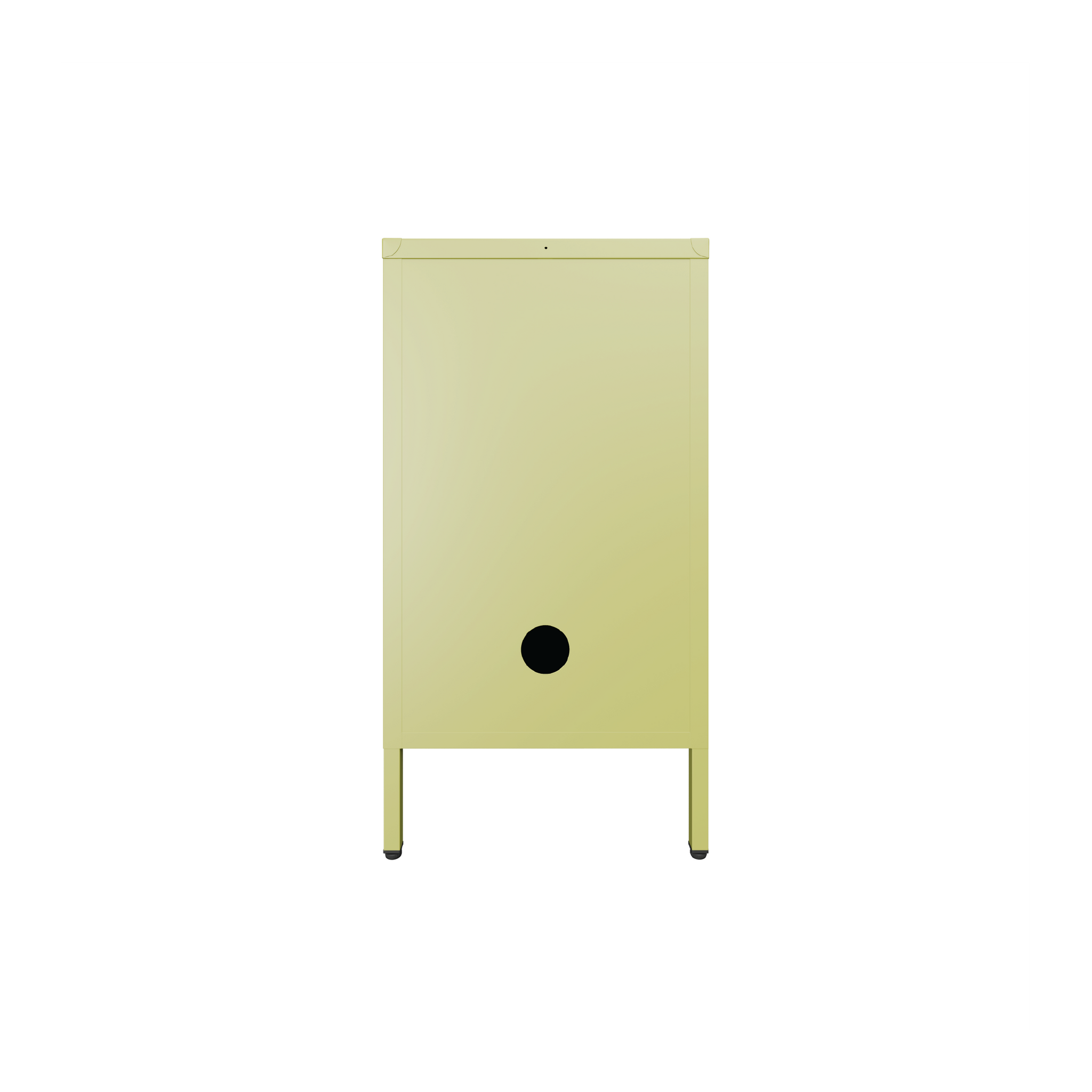 This colourful, dual-tone side table is 'sprinkled' with lots of fun details such as a chunky handle, interior scallops, charming corner details, a clever cable routing hole to keep cords tidy, and a reversible door.