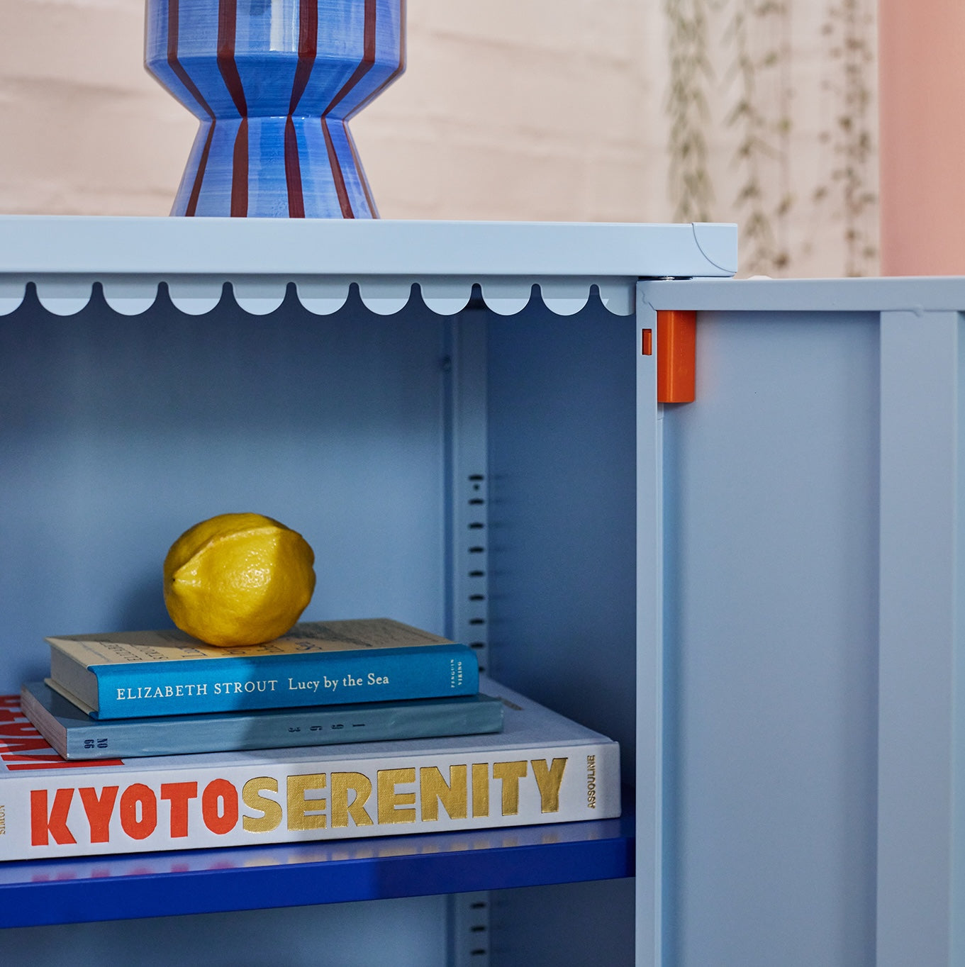 This colourful, dual-tone side table is 'sprinkled' with lots of fun details such as a chunky handle, interior scallops, charming corner details, a clever cable routing hole to keep cords tidy, and a reversible door.